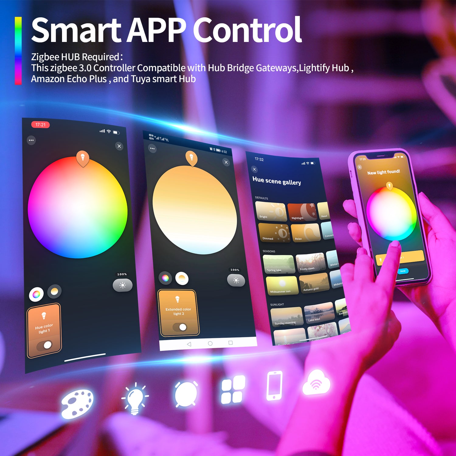 It needs to be used in conjunction with a Zigbee HUB and is compatible with mainstream gateways such as Tuya / Echo Plus / Lightify.